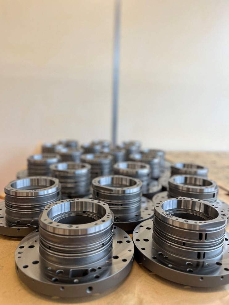 Die Rohteile warten in Reih und Glied! Vollautomatisierte Schleiferei für verschiedene Bauteile bis Durchmesser 400 mm.